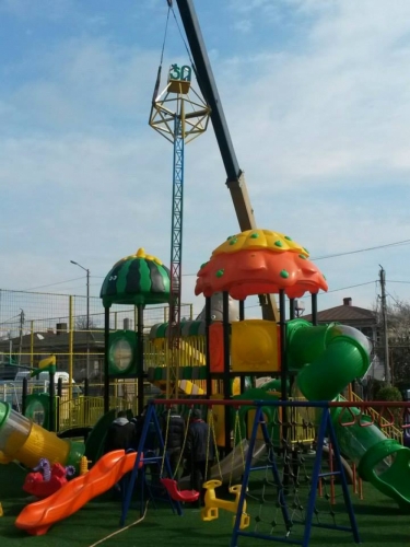 Приступили к работам по монтажу перекрытия территории. Детская цветная площадка GG "одевает шапку" - цветная крыша надежно защитит маленьких хозяев от капризов погоды!