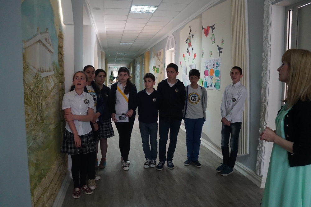 მოსწავლეები გიმნაზიის დერეფნების კედლებზე ბარელიეფად გამოსახულ ანტიკური სამყაროს საოცრებებთან რიგ-რიგობით ჩერდებოდნენ და წარმოადგენდნენ თითოეულ მათგანზე მოიძიებულ დეტალურ ინფორმაციას, პასუხობდნენ დასმულ შეკითხვებს.