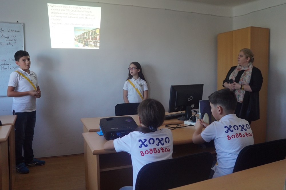 შეხვედრის პირველი ნაწილი დაეთმო, ჯიჯი გიმნაზიის პრეზენტაციას, რომელიც ინგლისურ ენაზე წარმართეს, მე-7 კლასის მოწავლეებმა, ნიკოლოზ ბოხუამ და ჯანეტა შონიამ.