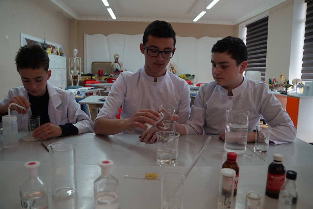 დღეს, მე-7 კლასის მოსწავლეებმა, ქიმიის გაკვეთილზე ჩაატარეს მარტივი ცდები, მჟავებისა და ფუძეების გამოყენებაზე. განასხვავეს მათი თვისებები, გამოიყენეს ინდიკატორები და პH-ის სკალა ფუძე, მჟავა და ნეიტრალური ხსნარების ამოსაცნობად; აღწერეს ხსნარის პH-ის ცვლილება ნეიტრალიზაციის პროცესში.